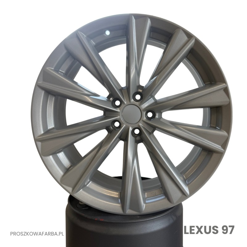 Farba proszkowa LEXUS 97 w odcieniu inspirowanym oryginalnym kolorem felg marki Lexus to elegancki, neutralny szary z wykończeniem gładkim i błyszczącym. Charakteryzuje się wysoką trwałością, odpornością na uszkodzenia mechaniczne oraz estetycznym, nowoczesnym wyglądem, który doskonale podkreśla linię felg i nadaje pojazdowi prestiżowego charakteru.